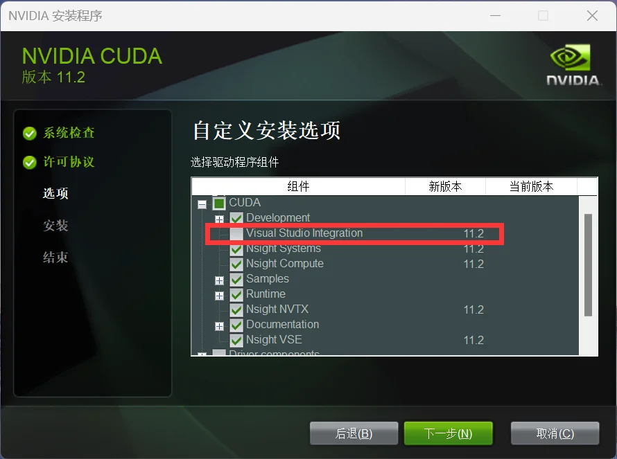 - 取消安装 Visual Studio Integration 组件,防止后续报错