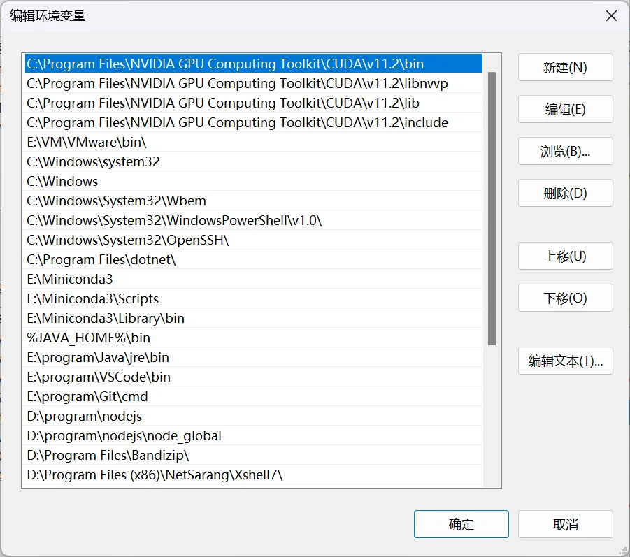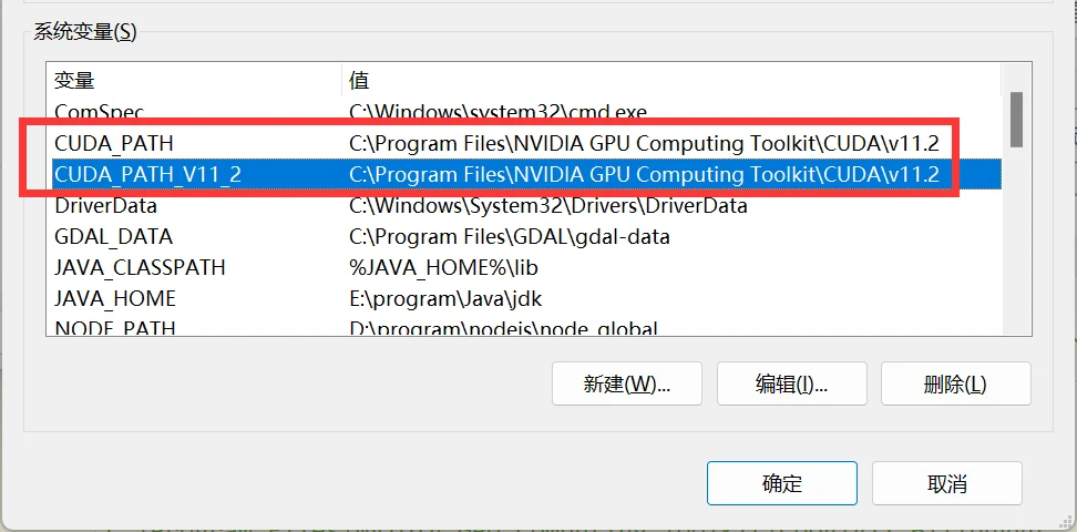 在成功安装 CUDA 后,系统会自动添加环境变量