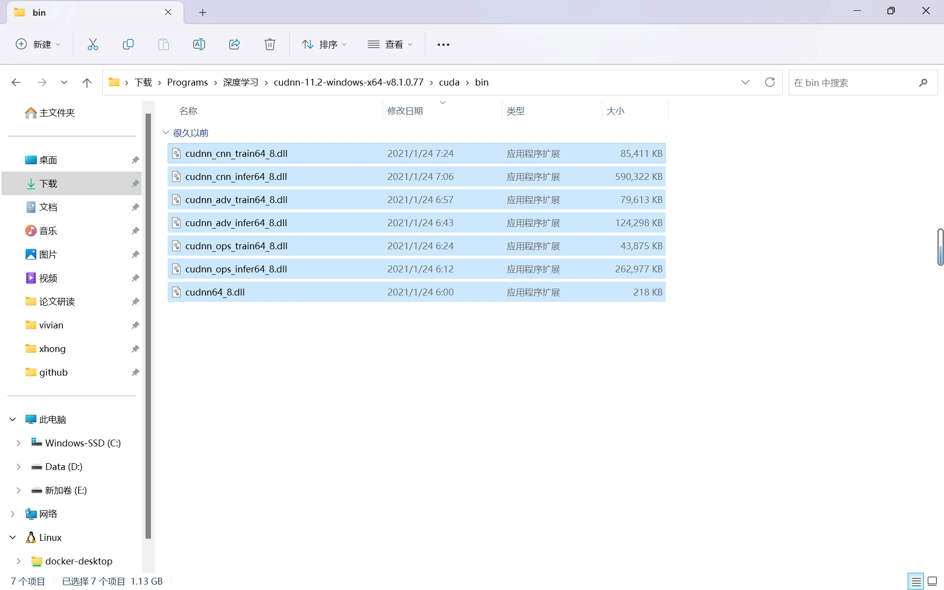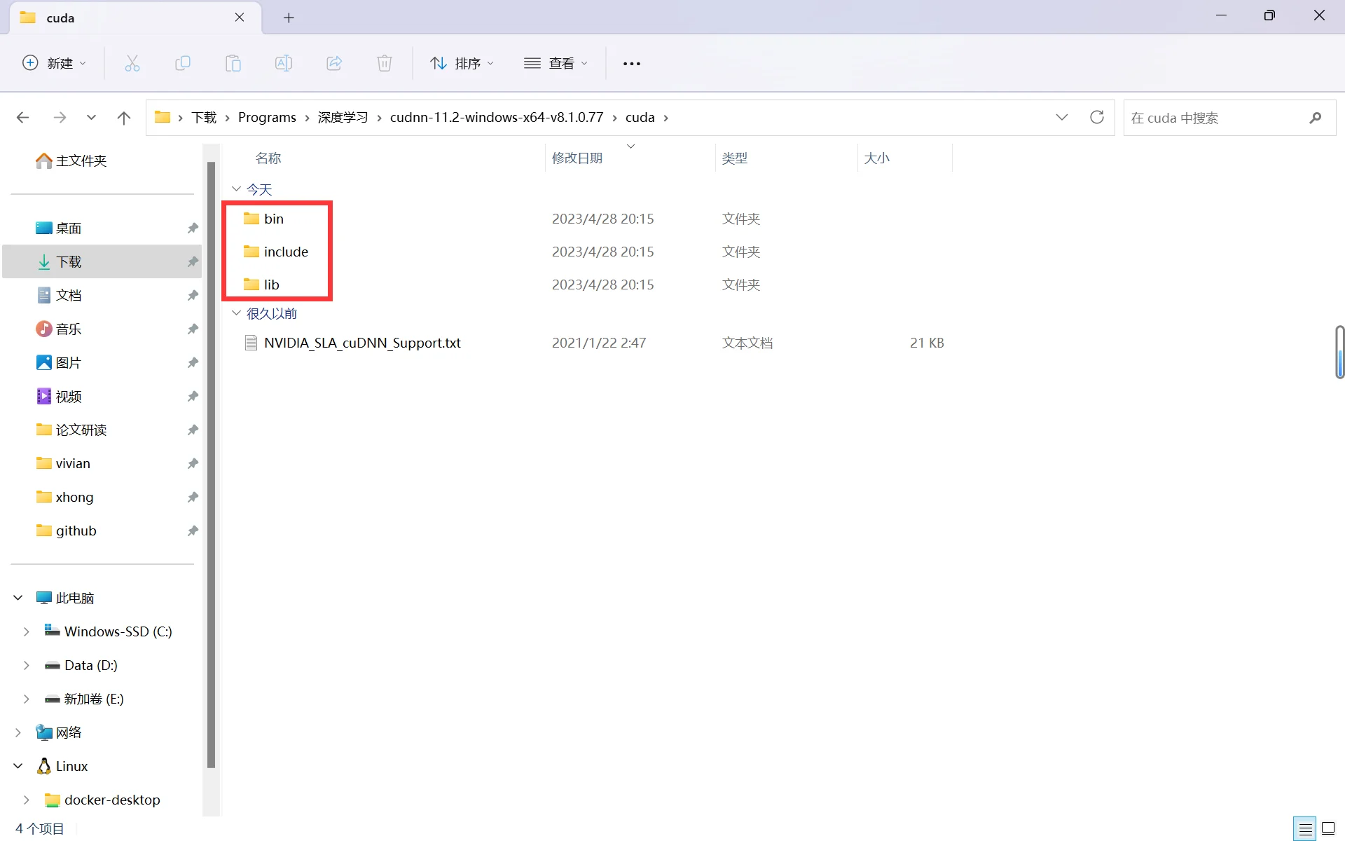 1、cuDNN8.1.0 解压包内容