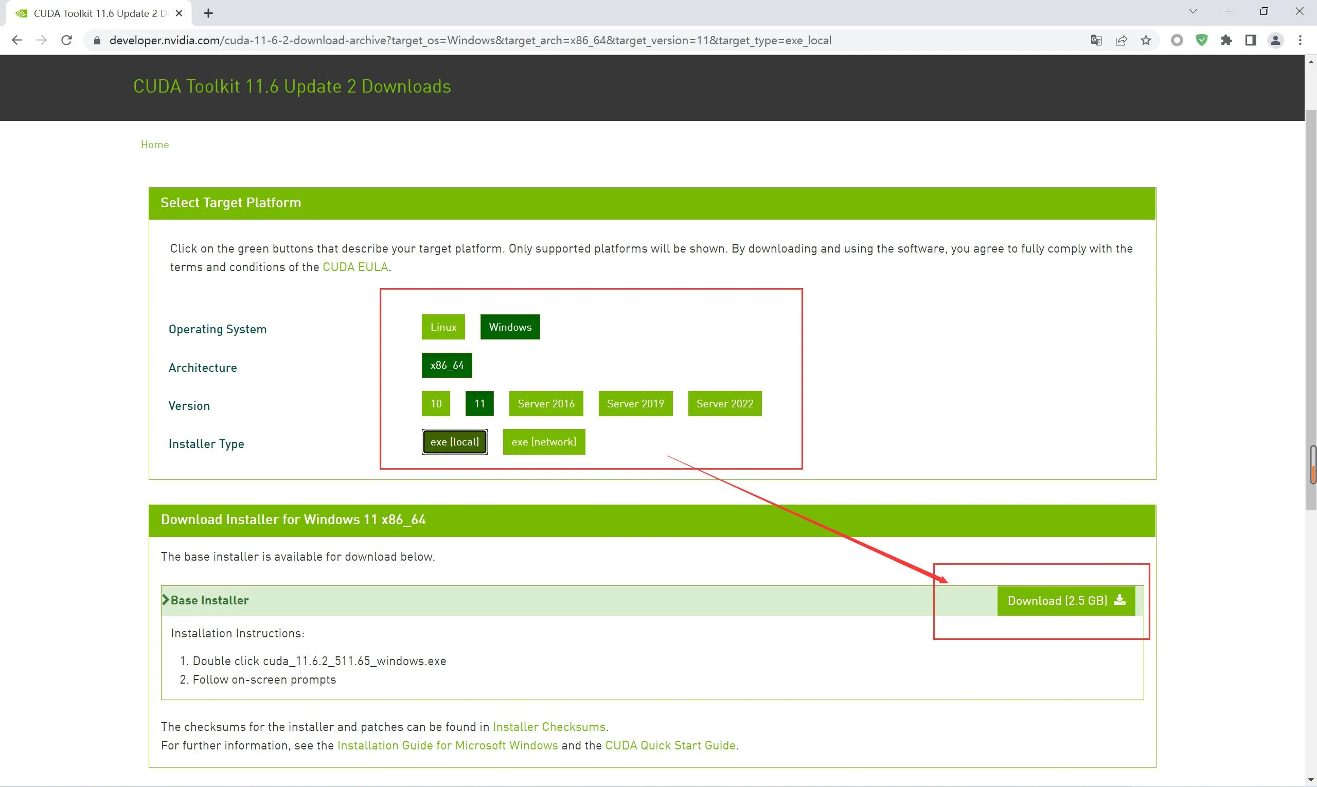 cuDNN下载,因为之前安装的 CUDA 版本号为 11.6,所以我们选择对应版本的 cuDNN 进行下载。