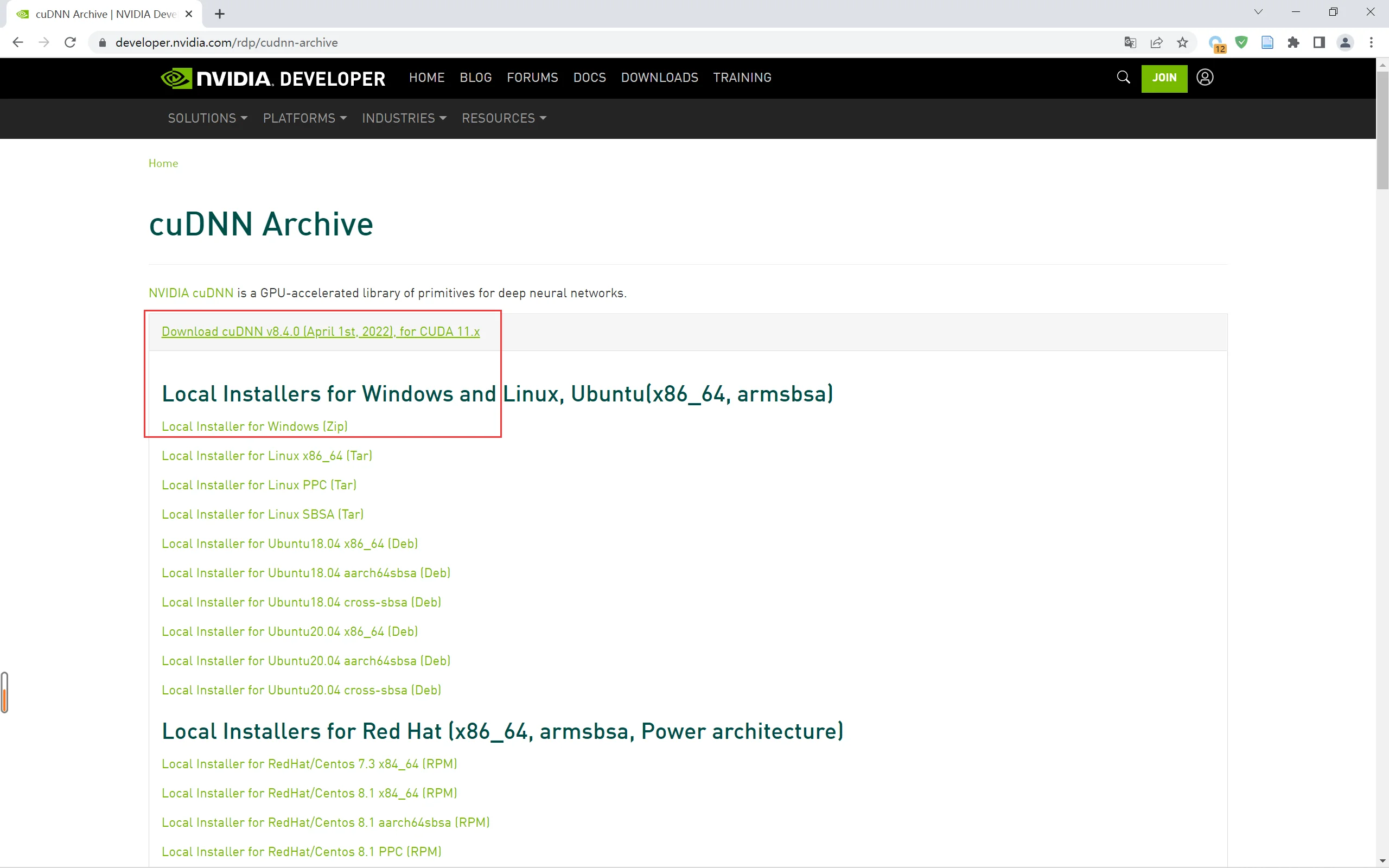 - 官网:cuDNN 下载,这里 必须登录账号 才能继续下载。