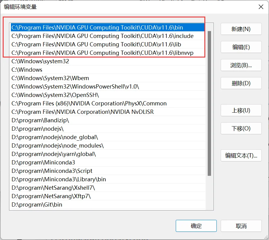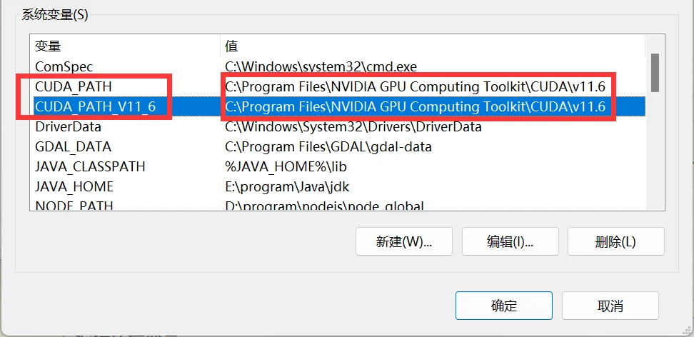 在成功安装 CUDA 后,系统会自动添加环境变量