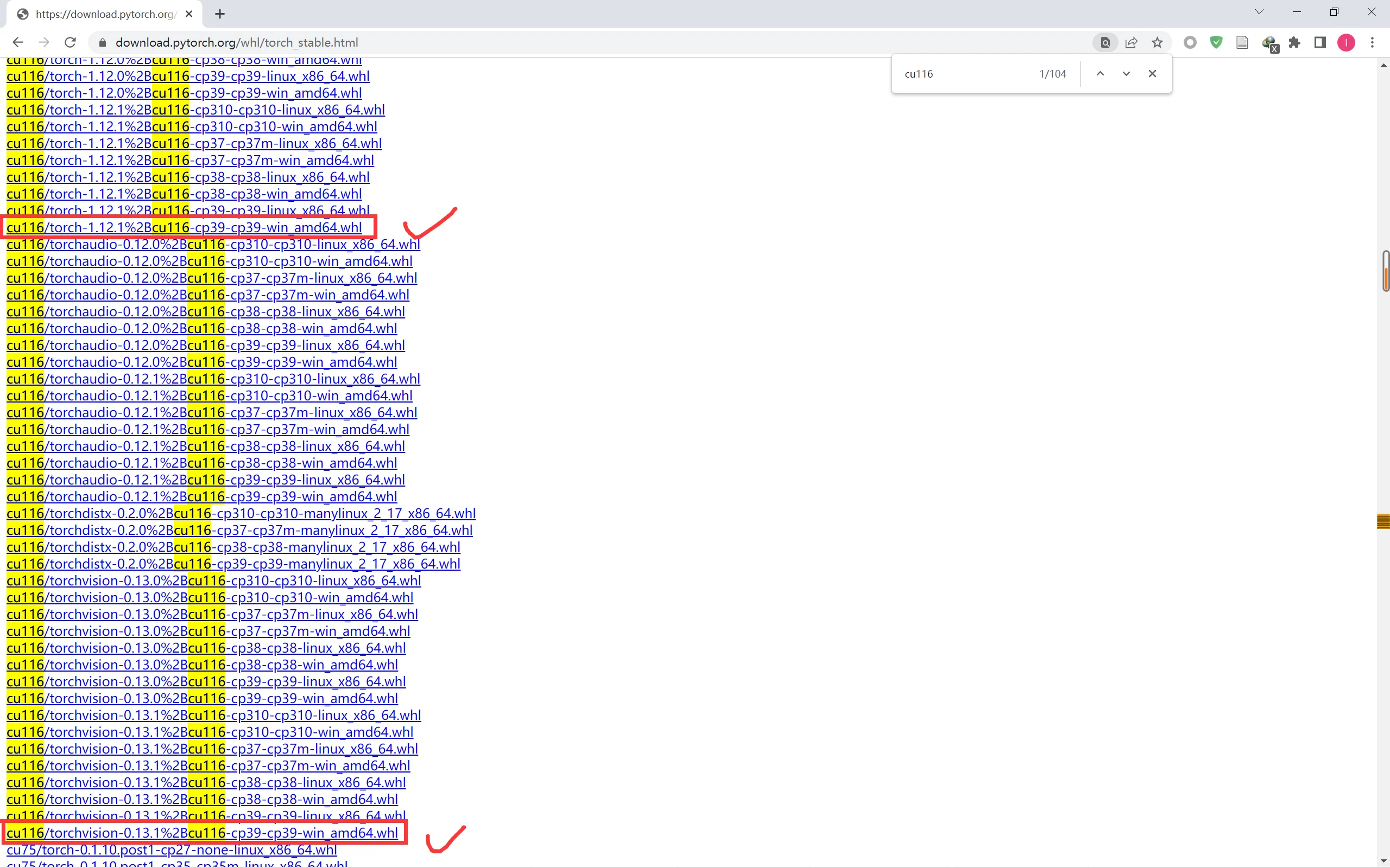 - cu116:表示 cuda 版本为 11.6(及以上都可以)