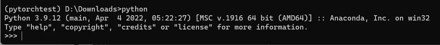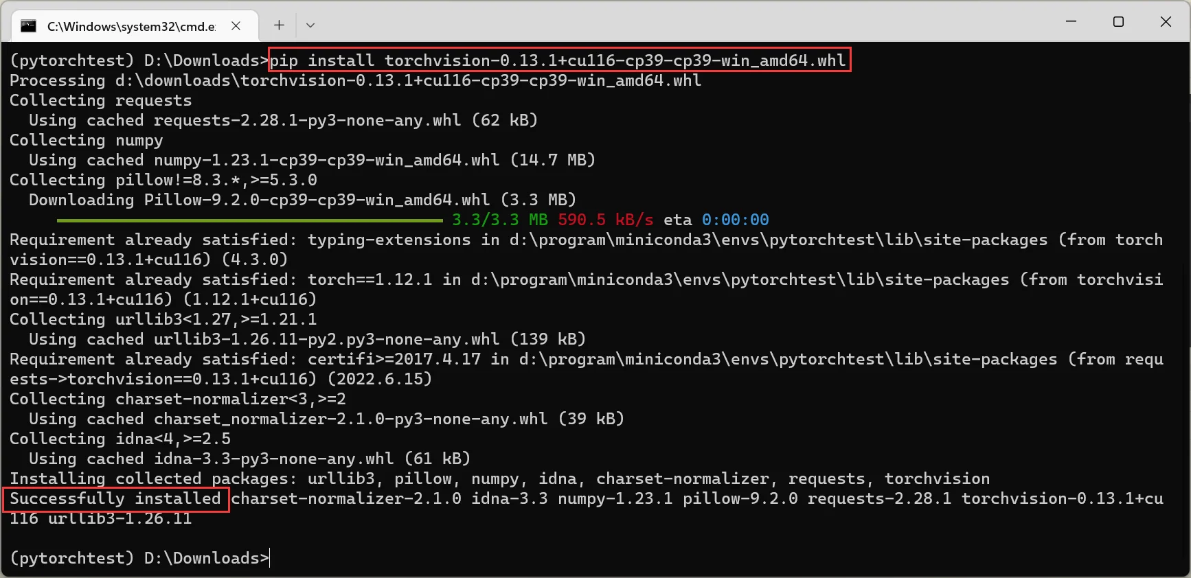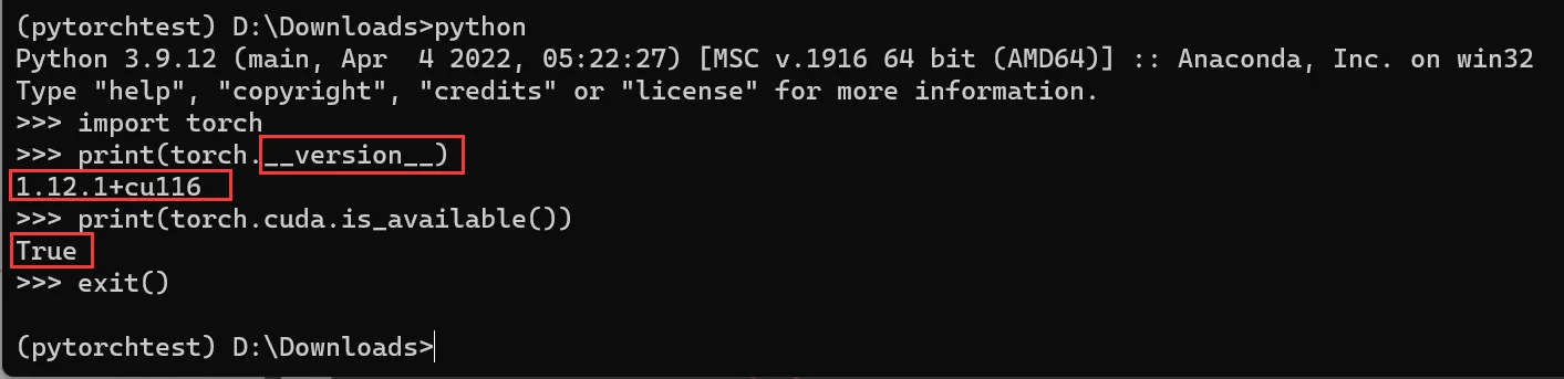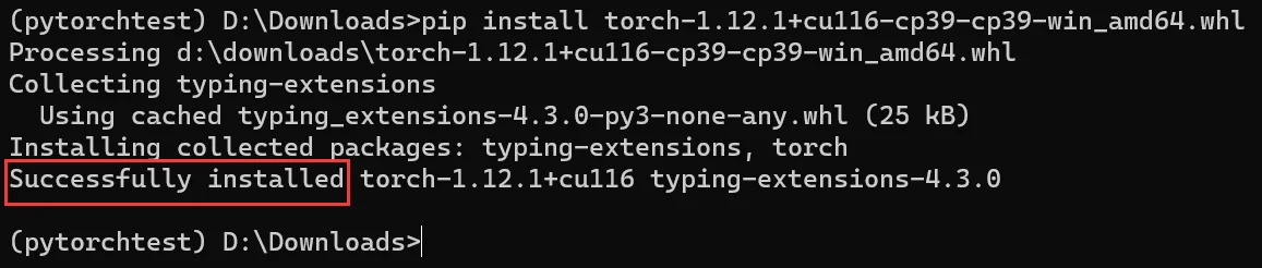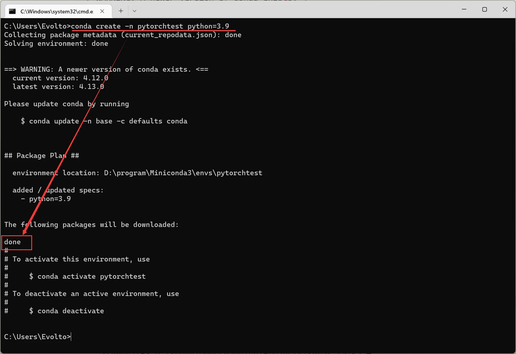 创建名为 pytorchtest 的 python3.9 虚拟环境