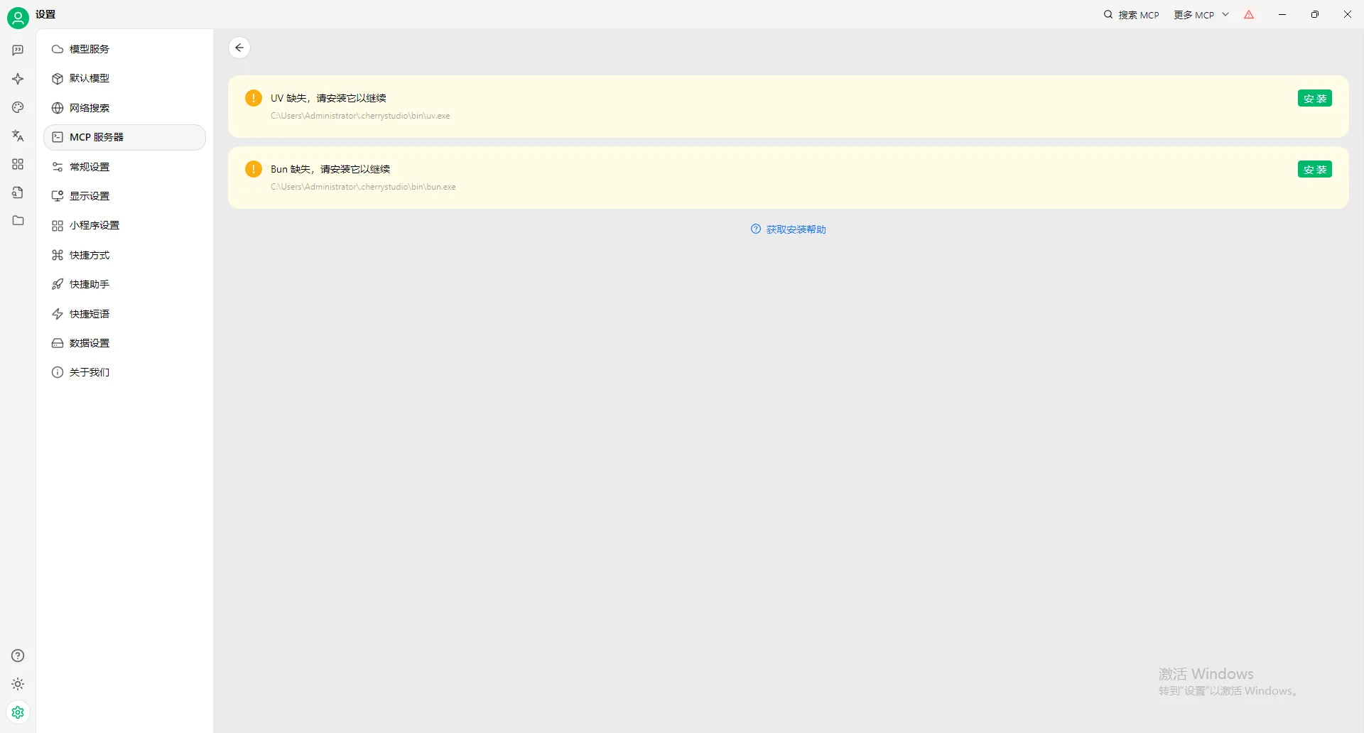 调用MCP服务运行需要支持Function Call的功能的大模型,且运行服务需要安装基础环境。