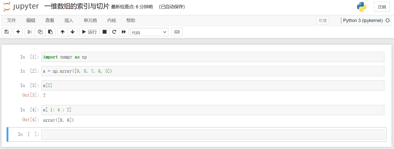 原理:取出数组中某一段的全部元素形成新的数组,索引时 不含 终止编号