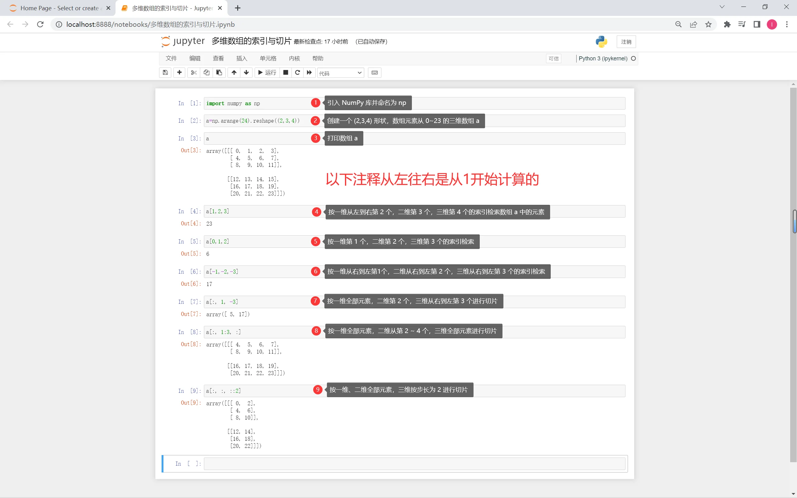 :可以选取整个维度 - 每个维度内部的切片方法与一维数组相同
