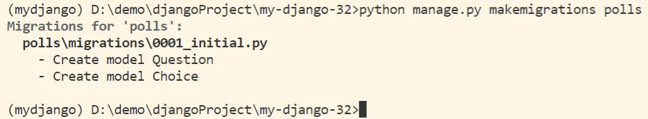 python manage.py makemigrations polls