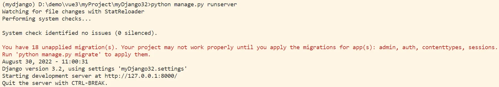 python manage.py runserver