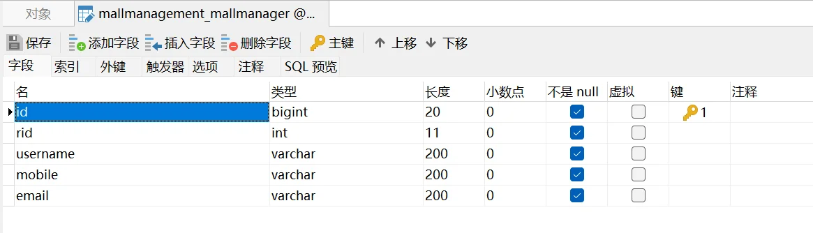 在应用中的 models.py 即 mallManagement/models.py 中定义数据模型。