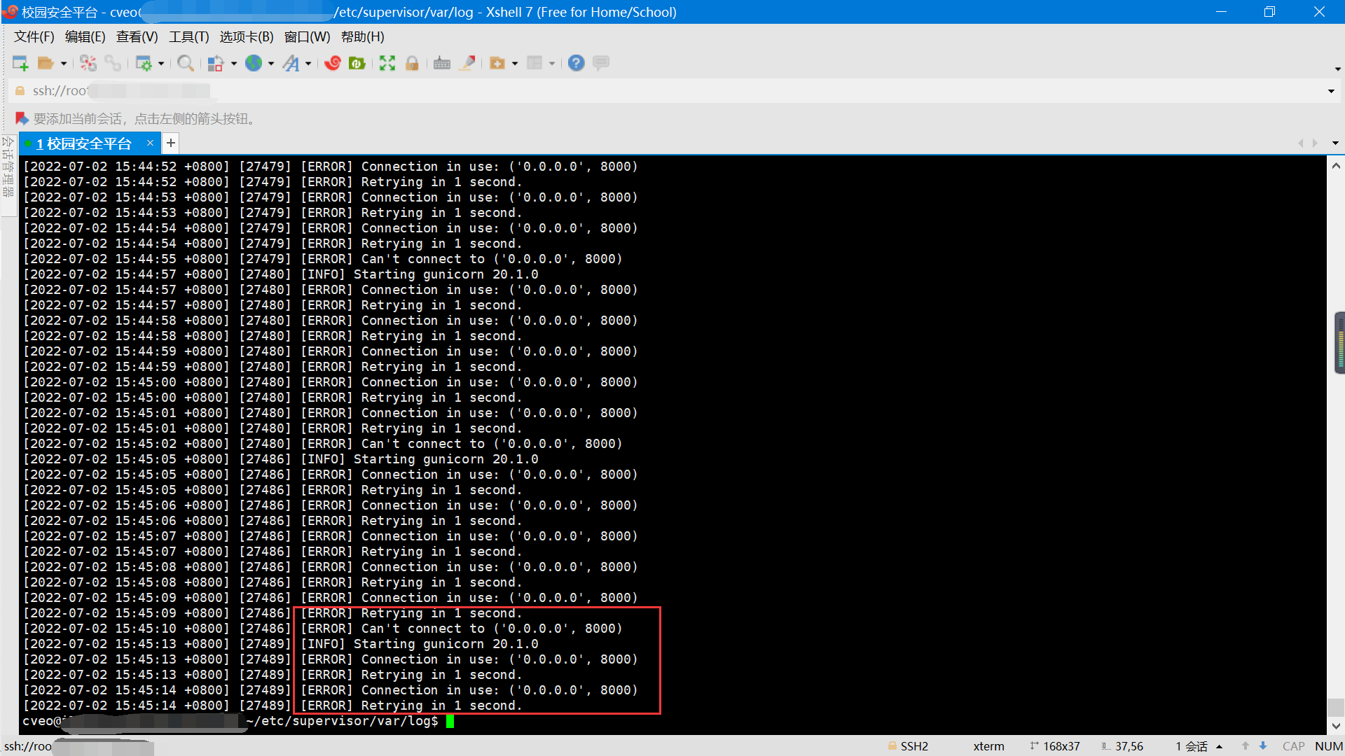在之前的部署中,我们配置了 supervisor 的日志存放位置,也可以去查看错误日志发现问题。